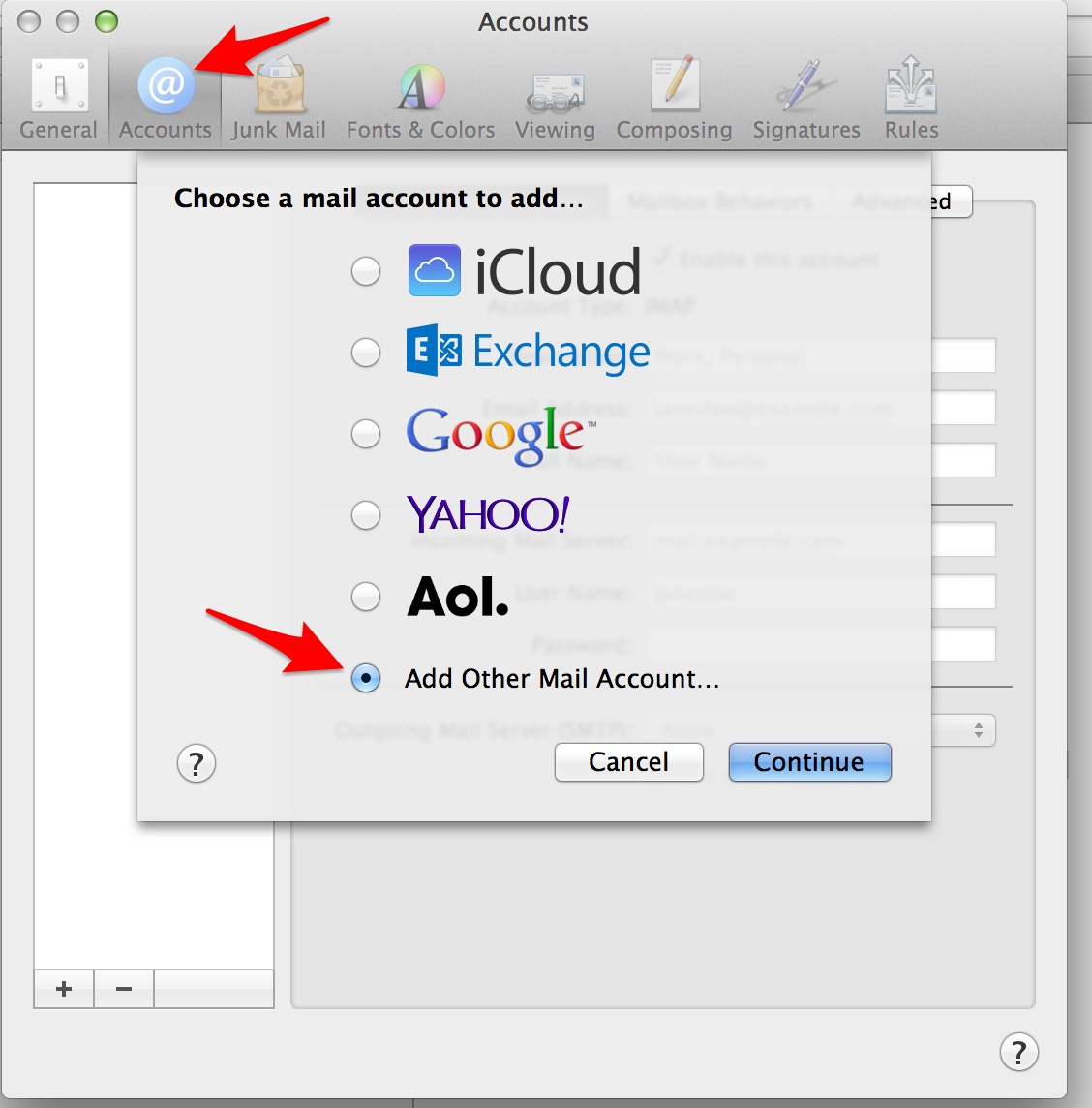 2. From the Menu Bar, choose Mail -> Preferences -> The Accounts dialog box appears.