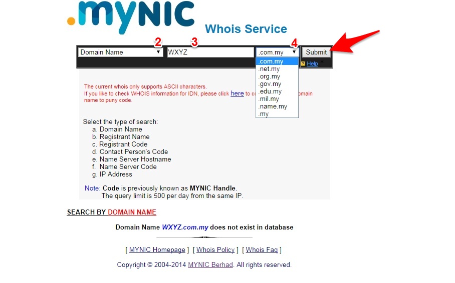 1. Check MYNIC Whois at this URL http://whois.domainregistry.my/index.jsp