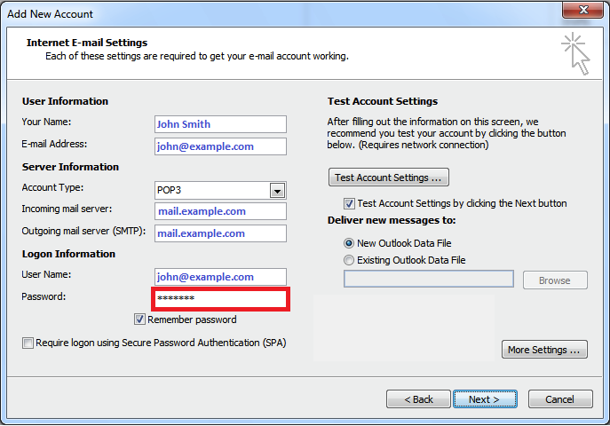 8.1. "Check" Require logon using Secure Password Authentication "SPA"