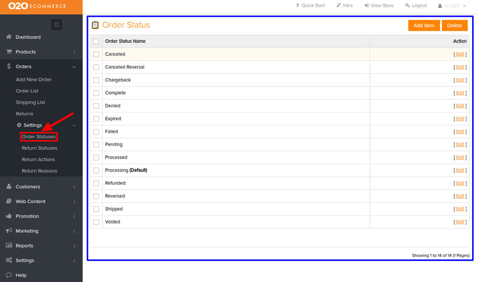 This is where you can define the type of statuses of orders that you require. After you have defined the statuses here, then, it will appear in the drop-down menu in your orders list.
