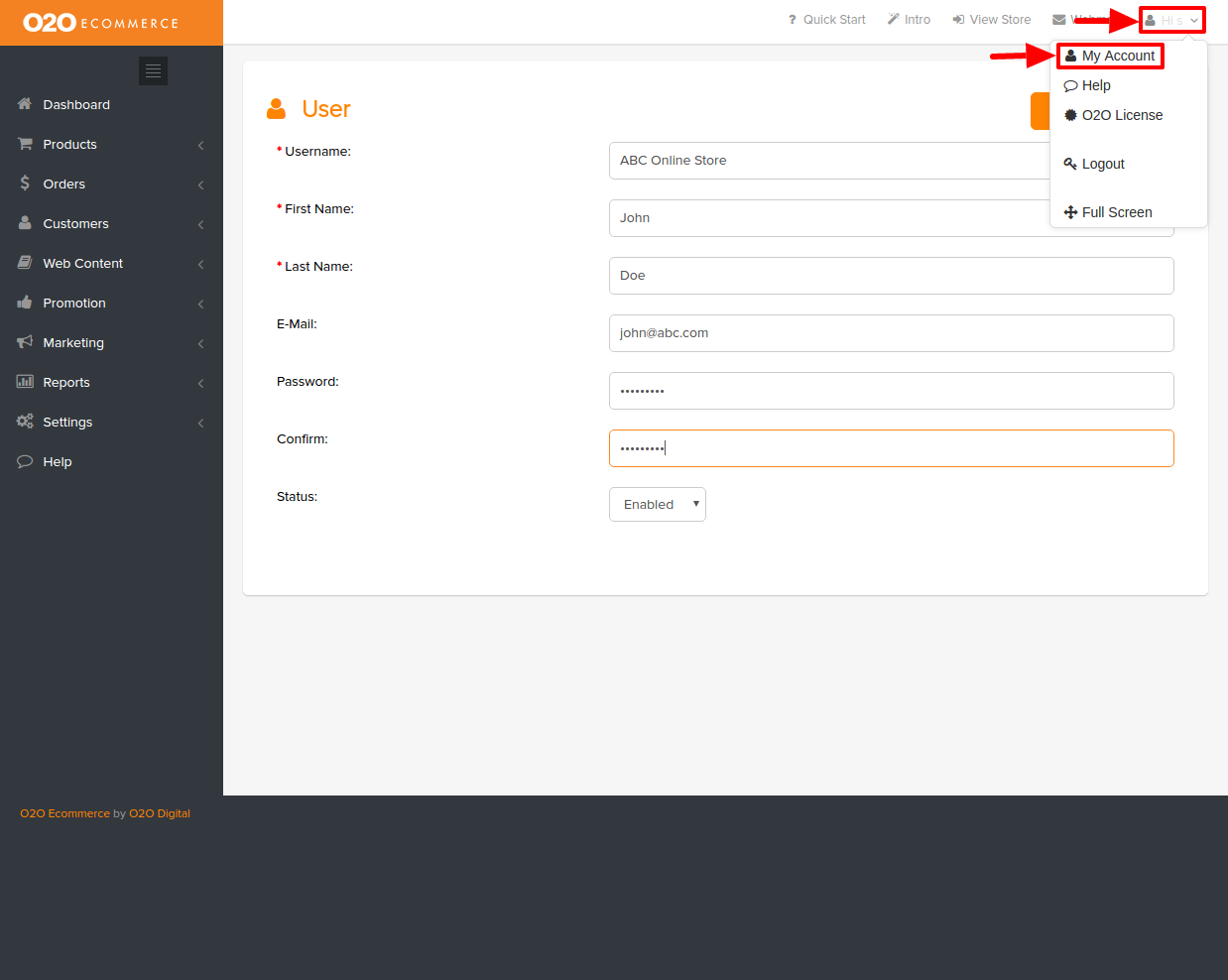 - Go to the top right corner of your Admin Page and you shall see, “Hi XXX” with a pointing down arrow. Click on it.