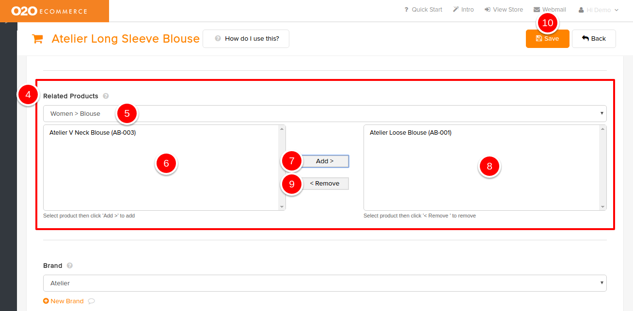 - To remove a product from the Related Products list, simply select it in step 8 and click Remove