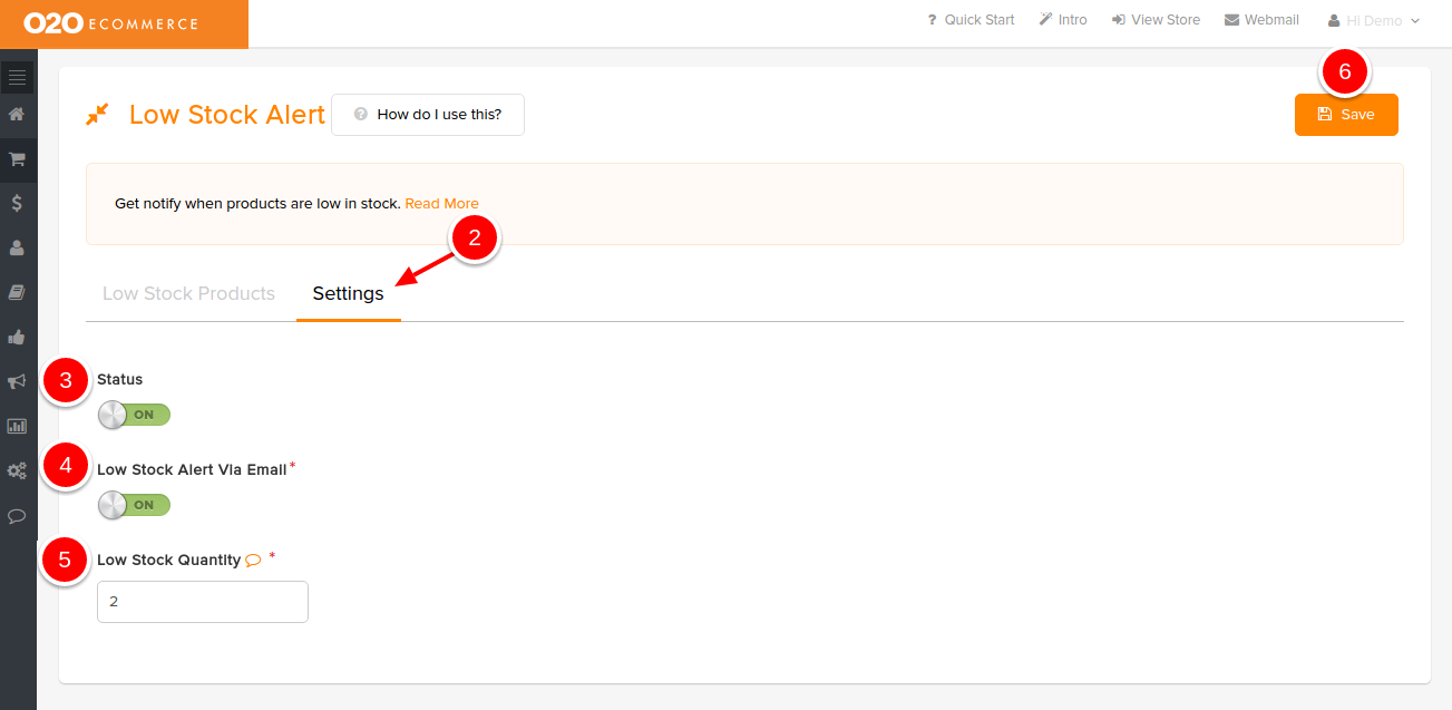 - Turn the Low Stock Alert Via Email to On