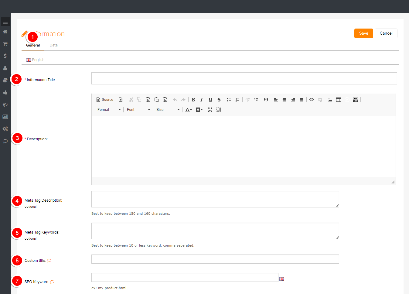 - Go to Web Content > Information Pages